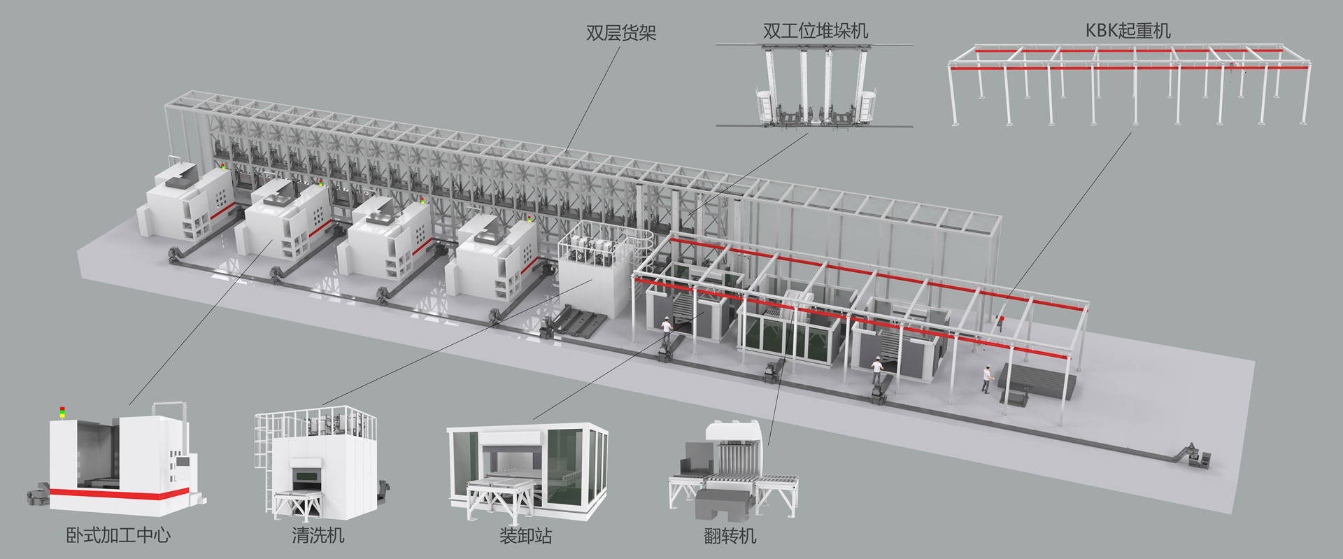 可實(shí)現(xiàn)刀具監(jiān)控、刀具補(bǔ)償、防錯系統(tǒng)等功能,堆垛機(jī)采用雙工位式,在各個工位對接時能一進(jìn)一出,節(jié)省時間,加快產(chǎn)線節(jié)拍。