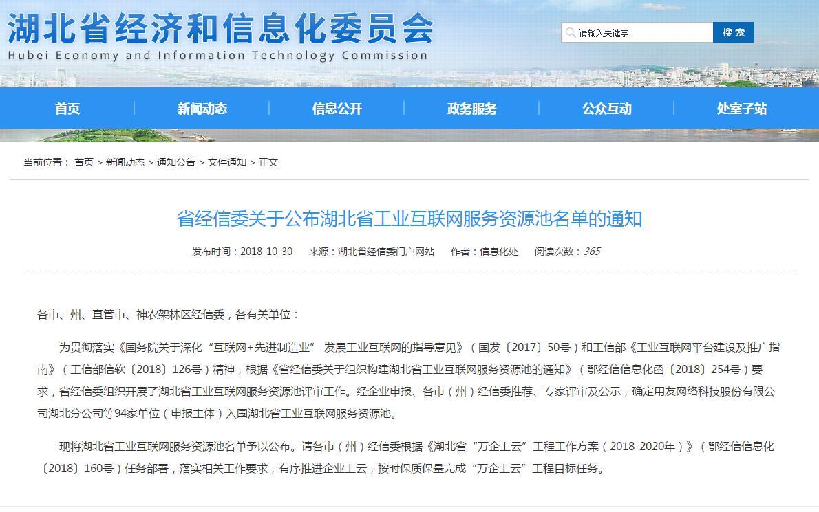 經(jīng)各地審核推薦、專家評審、層層篩選,日前,湖北省經(jīng)信委發(fā)布了《湖北省工業(yè)互聯(lián)網(wǎng)服務(wù)資源池名單》,武漢華工賽百數(shù)據(jù)系統(tǒng)有限公司成功入選首批工業(yè)互聯(lián)網(wǎng)服務(wù)資源池單位。