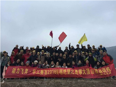 ??? 2016年1月31日,剛過大寒接近立春,華工賽百全體員工在楊肖總經(jīng)理及公司經(jīng)營領(lǐng)導(dǎo)層的帶領(lǐng)下冒著寒風(fēng)細(xì)雨勇攀大頂山,穿越光禿石頭絕壁。